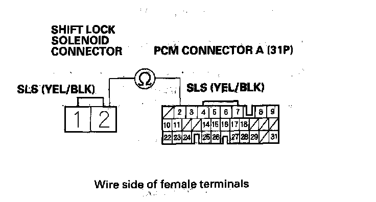 NO - Repair open in the wire between PCM connector terminal A22 and the shift lock solenoid.