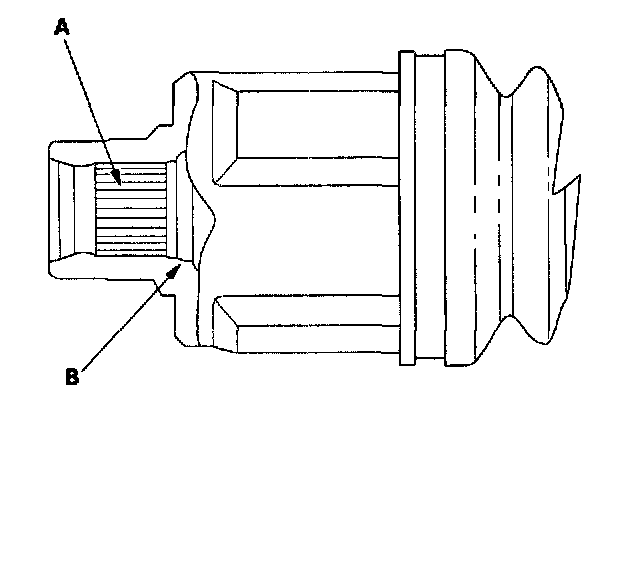 2. Apply 0.5 - 1.0 g (0.02 - 0.04 oz) of specified grease to the whole splined surface (A) of the right driveshaft. After applying grease, remove the grease from the splined grooves at intervals of 2 - 3 splines and from the set ring groove (B) so that air can bleed from the intermediate shaft.
