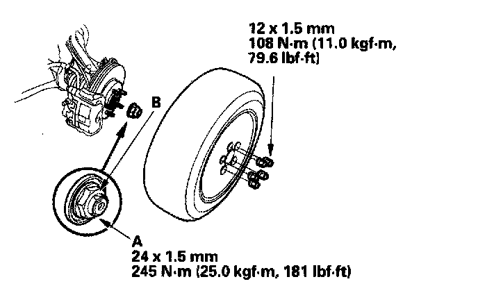 10. Clean the mating surfaces of the brake disc and the front wheel, then install the front wheel with the wheel nuts.