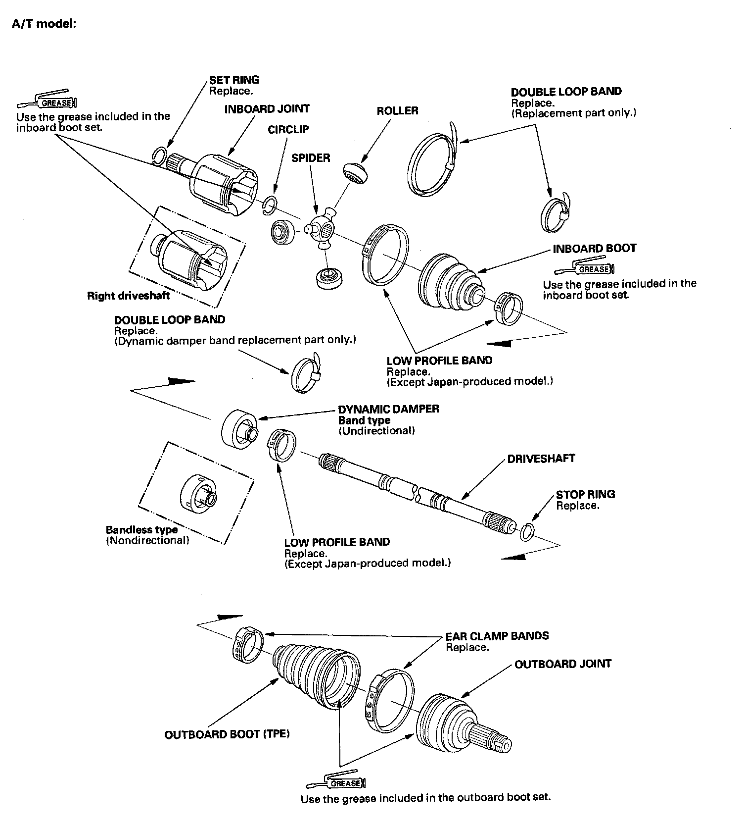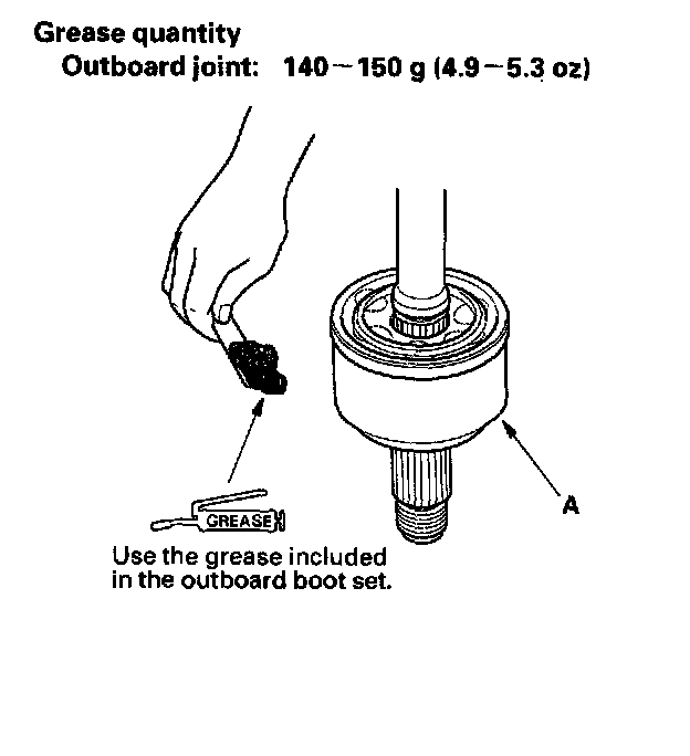 7. Pack the outboard joint (A) with the joint grease included in the new joint boot set.