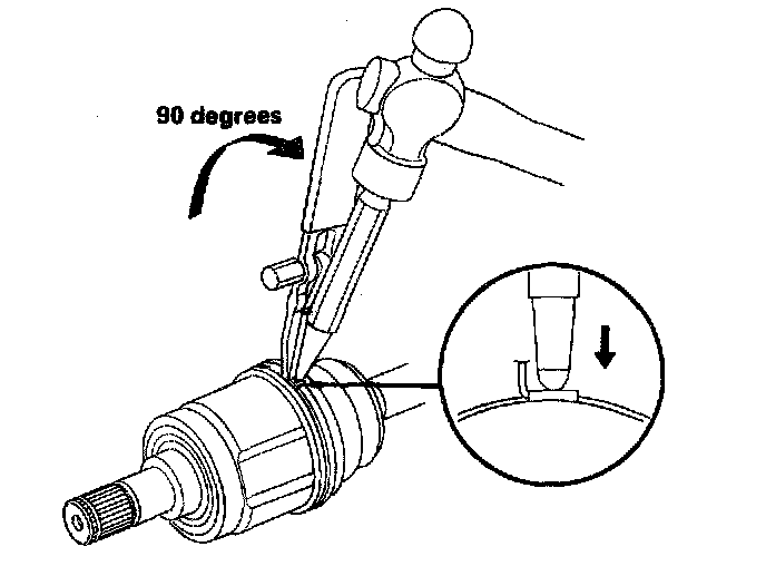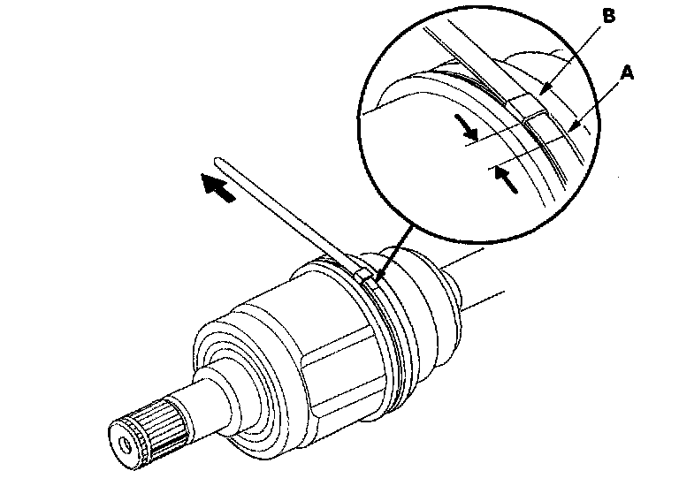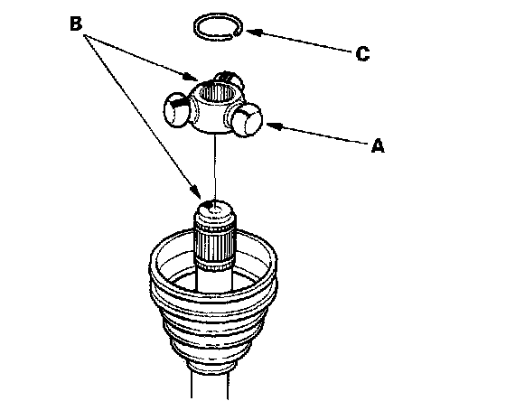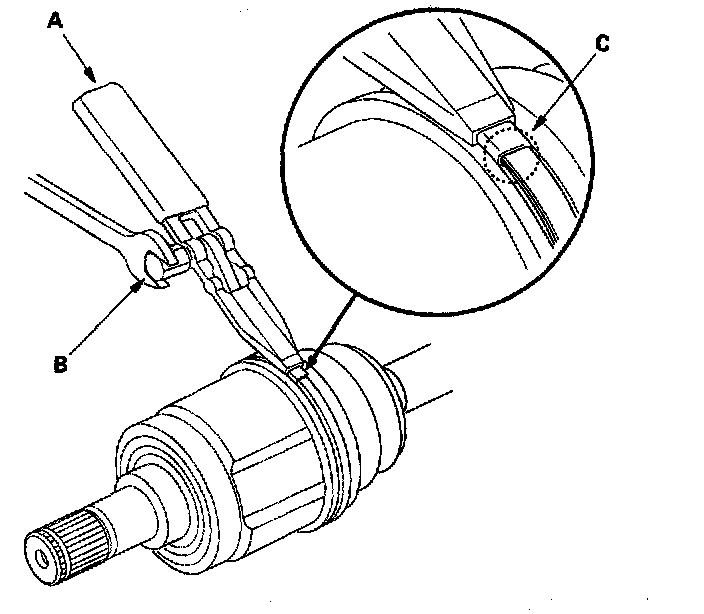 4. Fit the circlip (C) into the driveshaft groove. Rotate the circlip in its groove to make sure it is fully seated.