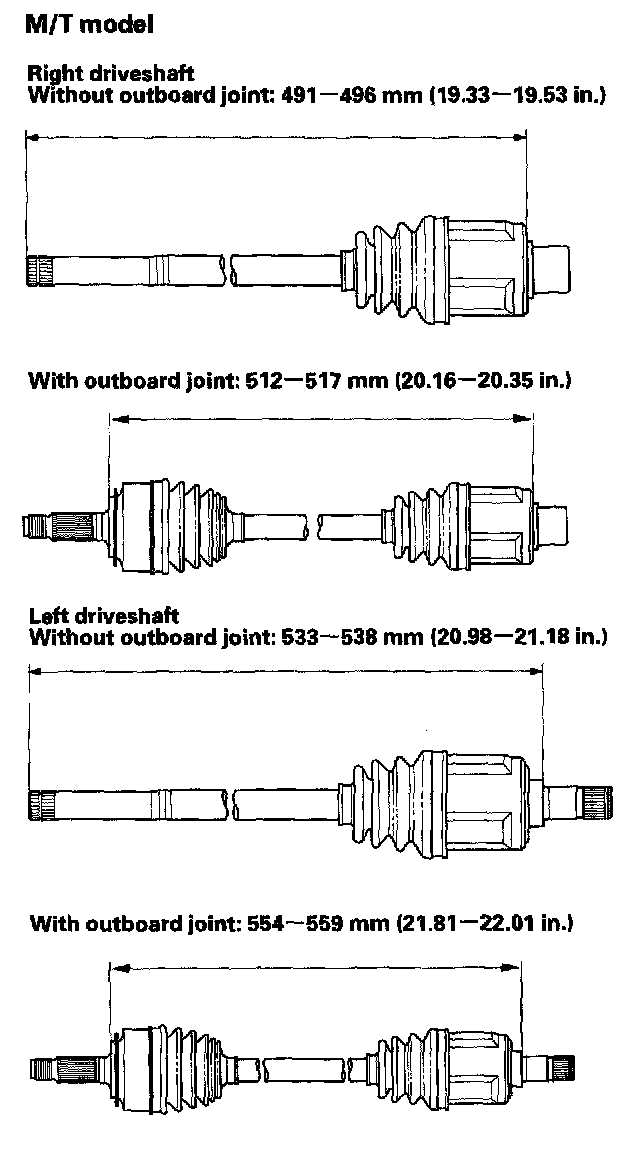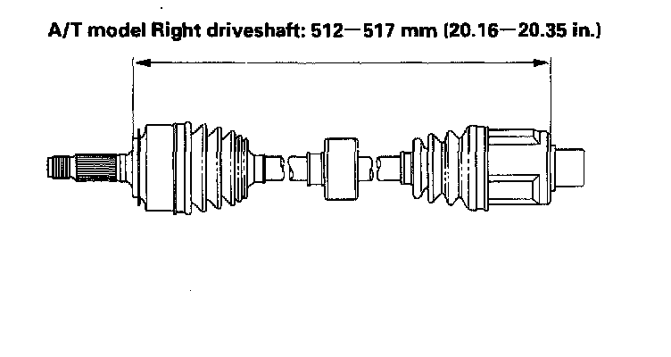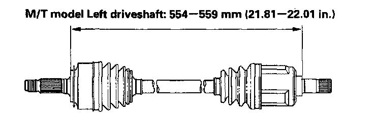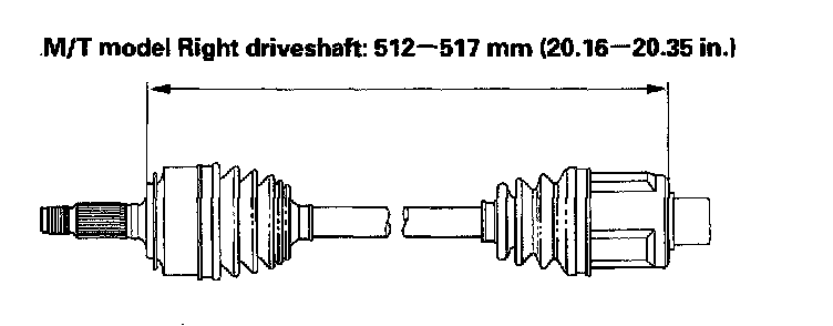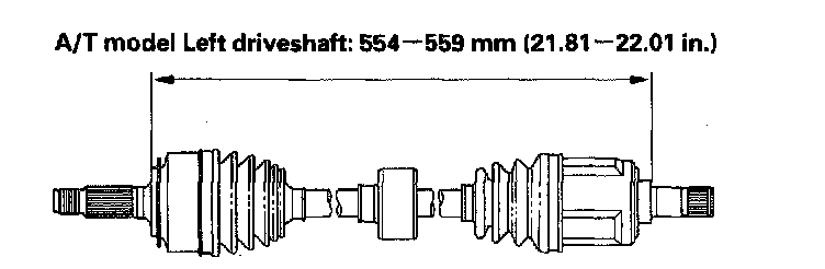 8. Adjust the length of the driveshafts as shown in the figure, then adjust the boots to halfway between full compression and full extension. Make sure the ends of the boots seat in the groove of the driveshaft and joint.