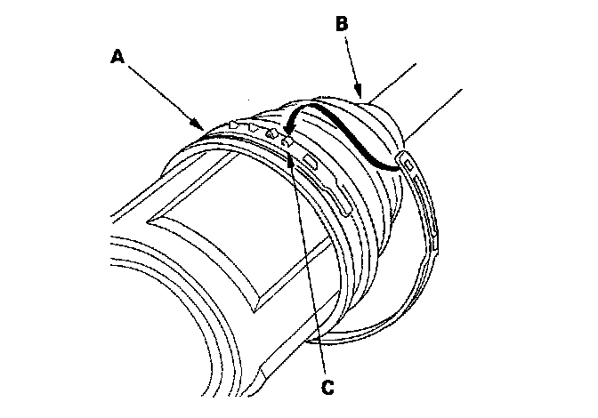 18. Place a wrench on the winding mandrel of the boot band tool, and tighten the band until the marked spot (C) on the band meets the edge of the clip.