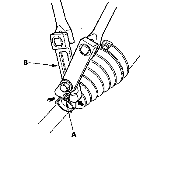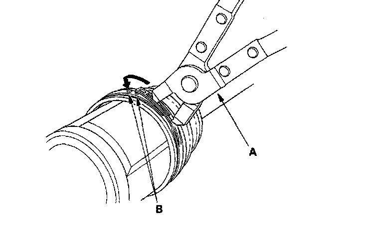 10. Close the ear portion (A) of the band with commercially available boot band pincers KentMoore J-35910 or equivalent (B).