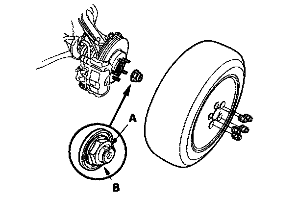 7. Remove the cotter pin (A) from the lower arm ball joint castle nut (B), and remove the nut.