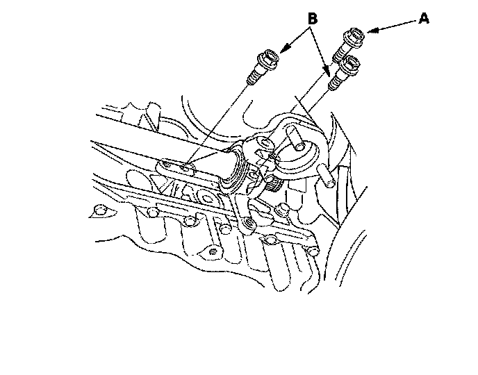 5. Remove the flange bolt (A) and two dowel bolts (B).