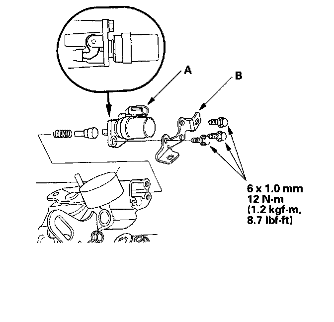 11. Install the reverse lockout solenoid assembly (A) and transmission harness stay (B).