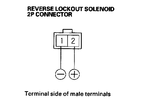 2. Connect battery positive terminal to the No. 2 terminal of the reverse lockout solenoid 2P connector, and connect the battery negative terminal to the No. 1 terminal.