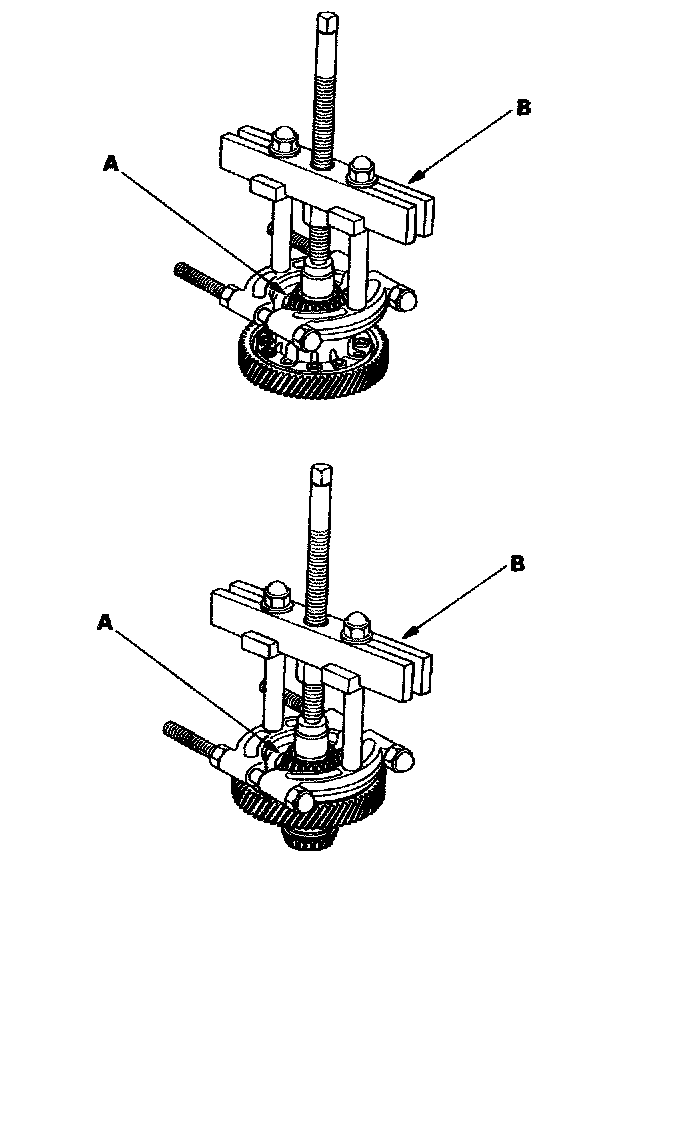 2. Remove the carrier bearing (A) with a commercially-available bearing puller (B).