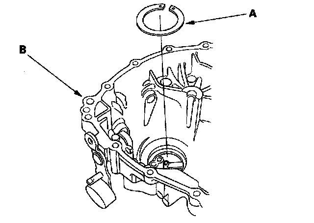 1. Remove the 82 mm shim (A) from the transmission housing (B)