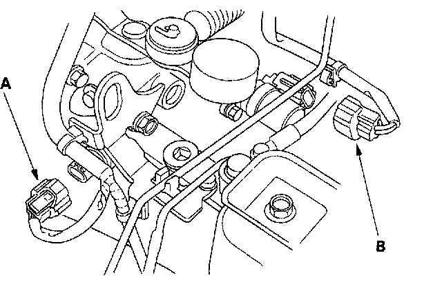 42. Connect the output shaft (countershaft) speed sensor connector (A) and input shaft (mainshaft) speed sensor connector (B).