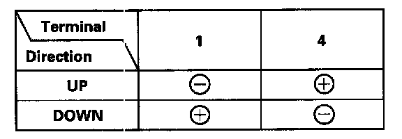 - Connect an analog voltmeter between the No. 2 (+) and No. 5 (-) terminals, and run the window motor down or up. The voltmeter needle should move back and forth alternately (a digital voltmeter should show the average voltage between 0 - 5 V).