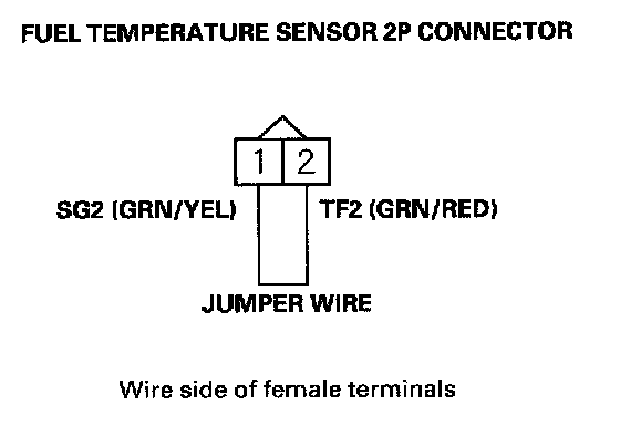 9. Remove the jumper wire from the fuel temperature sensor 2P connector.