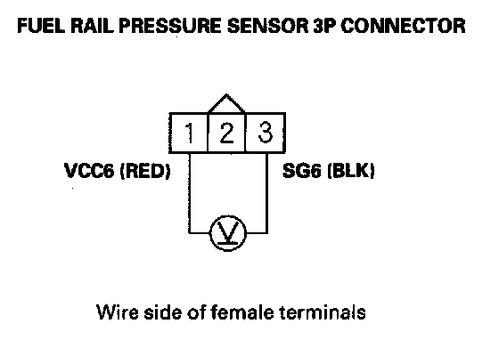 7. Measure voltage between fuel rail pressure sensor 3P connector terminals No. 1 and No. 3.