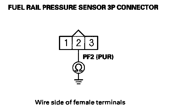 11. Check for continuity between fuel rail pressure sensor 3P connector terminal No. 2 and body ground.