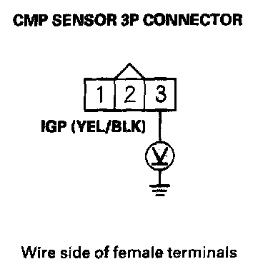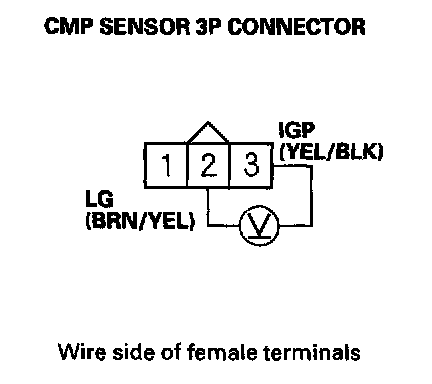 10. Measure voltage between CMP sensor 3P connector terminals No. 2 and No. 3.