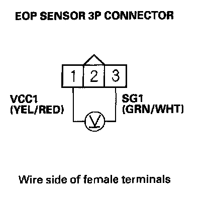 9. Measure voltage between EOP sensor 3P connector terminals No. 1 and No. 3.