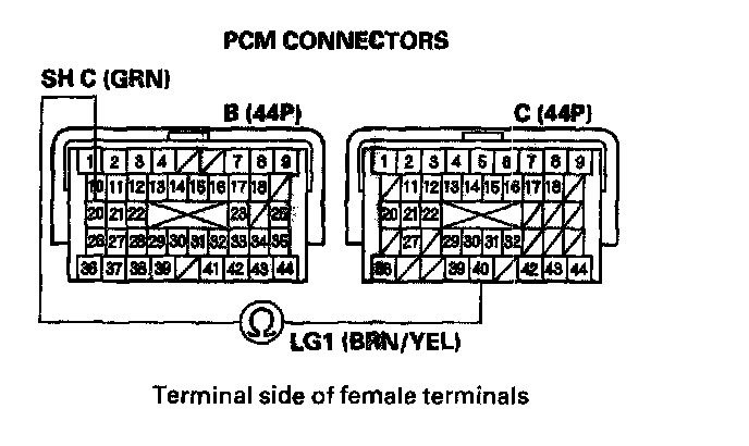 10. Measure resistance between PCM connector terminals B20 and C40.