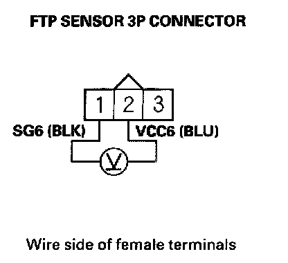 7. Measure voltage between FTP sensor 3P connector terminals No. 1 and No. 2.