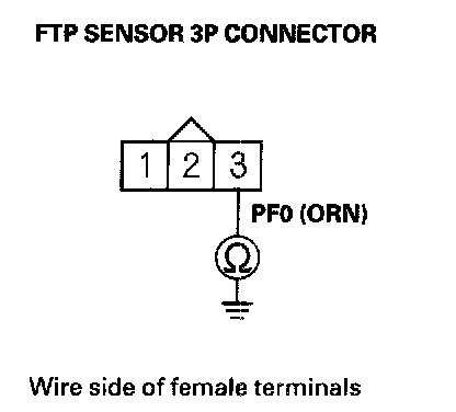 11. Check for continuity between FTP sensor 3P connector terminal No. 3 and body ground.