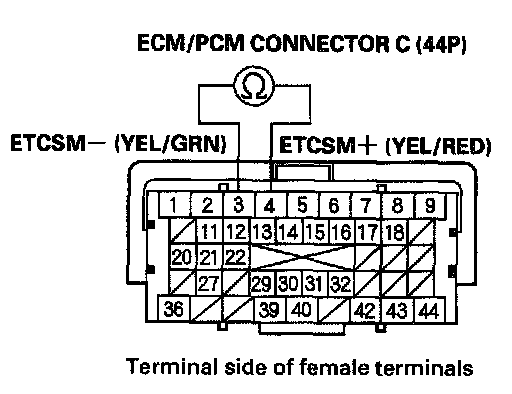 NO - Repair short in the wires between ECM/PCM connector terminals C3 (ETCSM- line) and C4 (ETCSM+ line), then go to step 7.