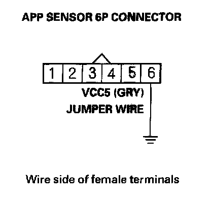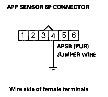 11. Connect APP sensor 6P connector terminal No. 4 to body ground with a jumper wire.