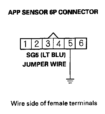 10. Connect APP sensor 6P connector terminal No. 5 to body ground with a jumper wire.