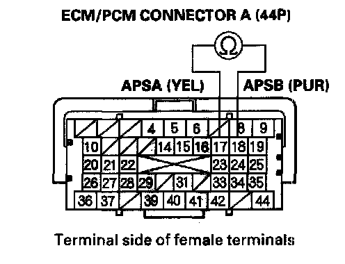 Yes - Repair short in the wire between ECM/PCM connector terminals A17 (APSA line) and A18 (APSB line), then go to step 13.