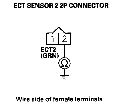10. Check for continuity between ECT sensor 2 2P connector terminal No. 2 and body ground.