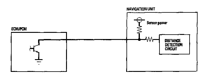 The navigation unit calculates the vehicle position (the driving direction and the current position) by receiving the directional change signals from the yaw rate sensor and the travel distance signals from the PCMs vehicle speed pulse (VSP) signal.