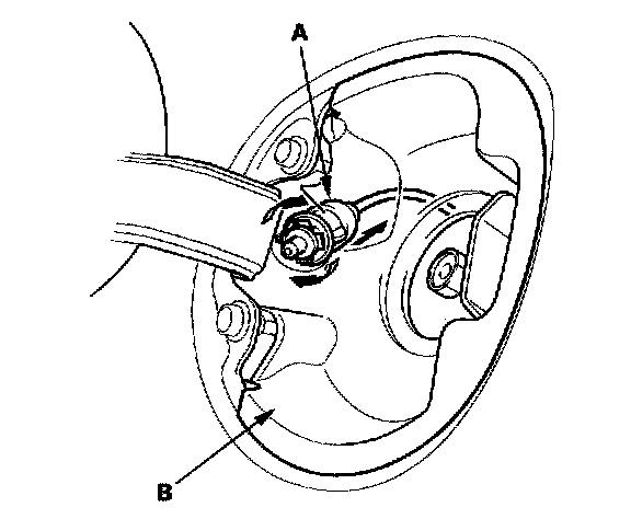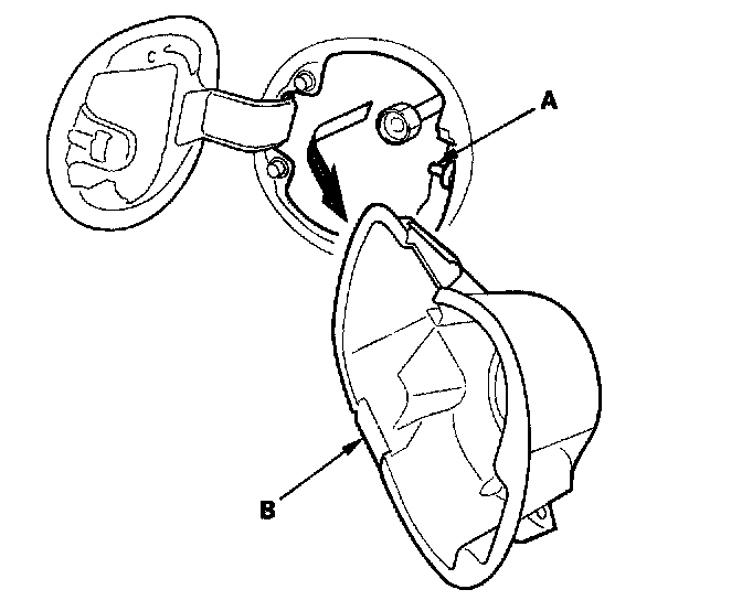 2. Remove the fuel fill door switch (A) by turning it 90° from the fuel receptacle adapter (B).