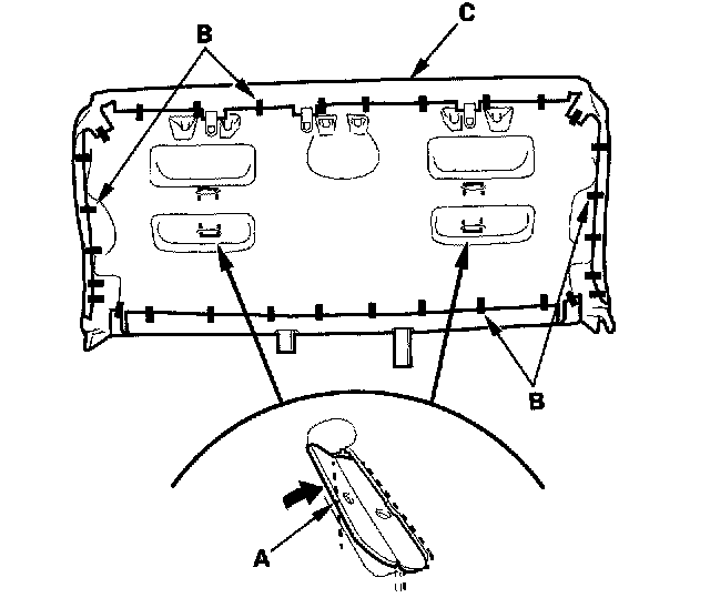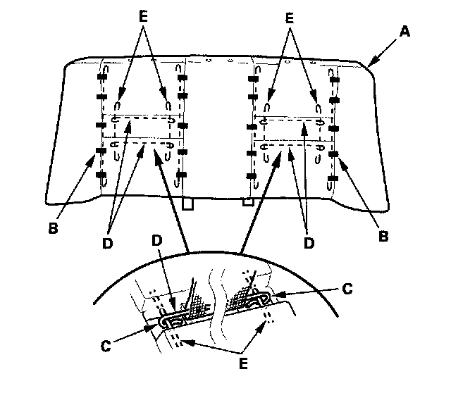 - Replace any clips (A) you removed with new ones. Install them with commercially available upholstery ring pliers (B).