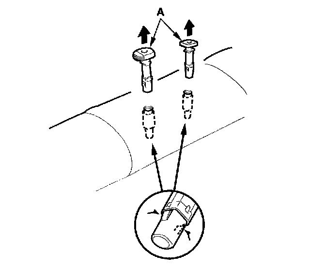 4. Pull out the headrest guides (A) while pinching the end of the guides, and remove them.