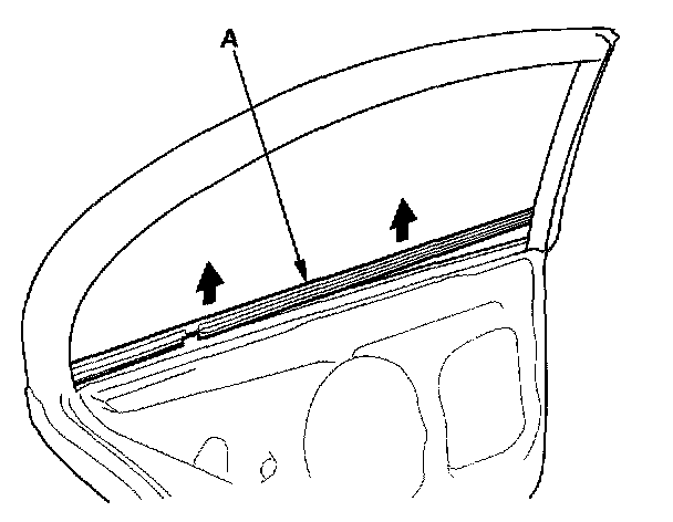 3. Starting at the front, slowly pull up the rear door glass outer weatherstrip (A).