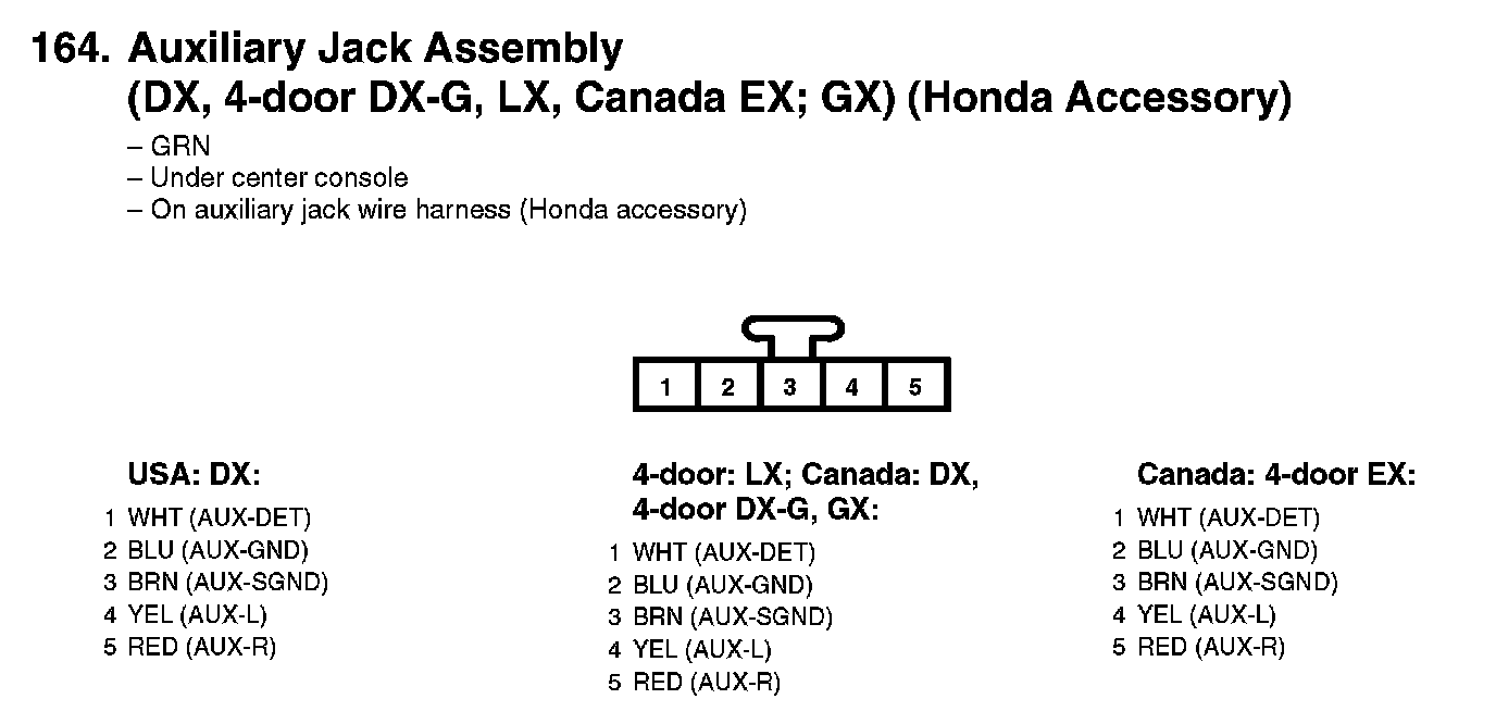 164. Auxiliary Jack Assembly (DX, 4-door DX-G, LX, Canada EX; GX) (Honda Accessory):