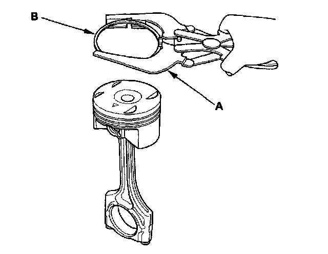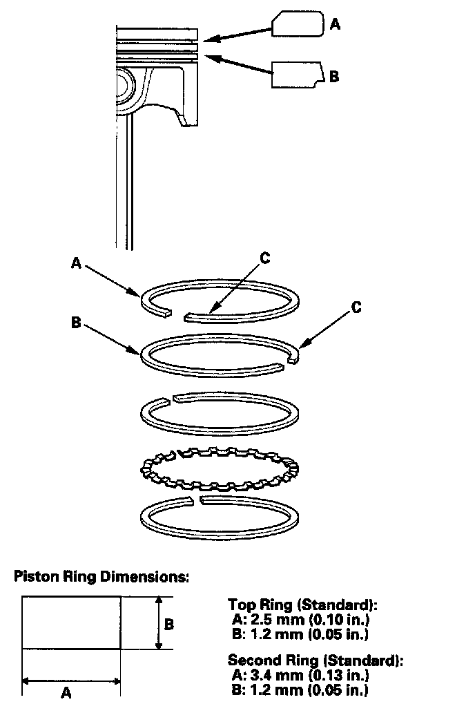5. Measure the piston ring end-gap (B) with a feeler gauge: