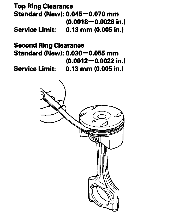 9. After installing a new set of rings, measure the ring-to-groove clearances.