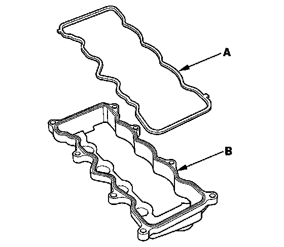 2. Install the head cover gasket (A) in the groove of the cylinder head cover (B).