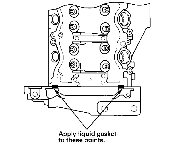 4. Apply liquid gasket, P/N 08717-0004, 08718-0001, 08718-0002, 08718-0003, or 08718-0009, on the oil pump mating areas.