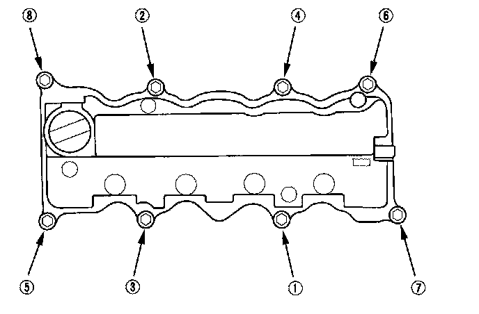 5. Install the cylinder head cover, and tighten the bolts in two or three steps. In the final step, tighten all the bolts, in sequence, to 9.8 Nm (1.0 kgf-m, 7.2 ft. lbs.).
