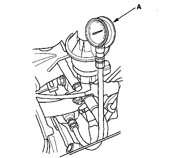 1. Remove the engine oil pressure switch, then install an oil pressure gauge (A).