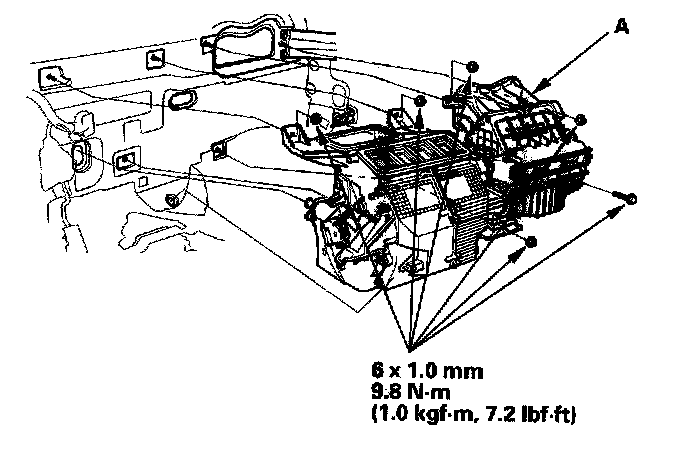 Heater Unit/Core ReplacementSRS components are located in this area. Review the SRS component locations, and the precautions and procedures before repairing or servicing.