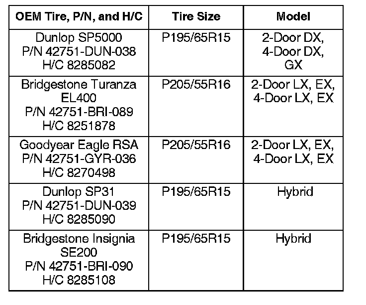 For replacement tires, call the American Honda Tire Program through The Tire Rack at 877-327-8473.
