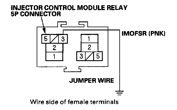 4. Connect injector control module relay 5P connector terminal No. 3 to body ground with a jumper wire.