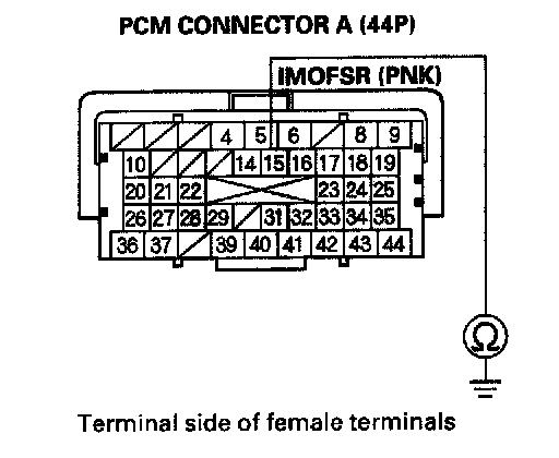 7. Check for continuity between body ground and PCM connector terminal A15.