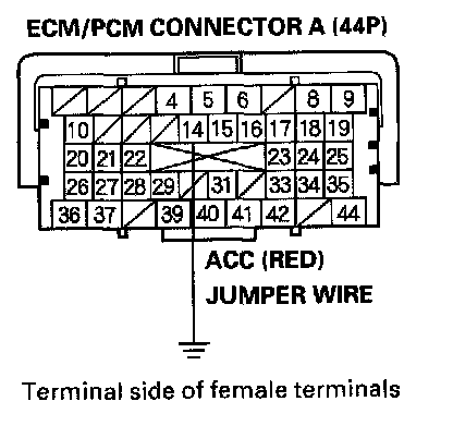 13. Momentarily connect ECM/PCM connector terminal A14 to body ground with a jumper wire several times.