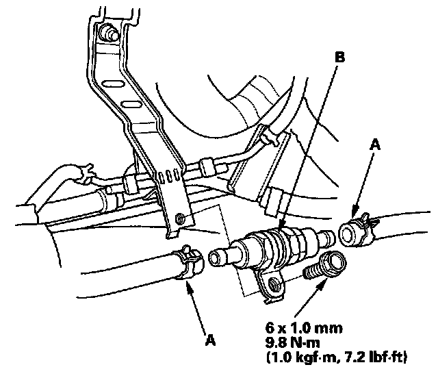 2. Remove the water bypass hoses (A) from the fuel pressure regulator thermostat, then plug the hoses.