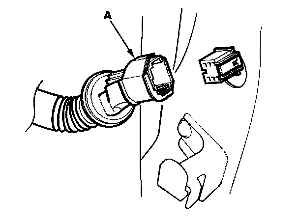 5. Lower the vehicle. Remove the left-rear door, then disconnect the connector (A).