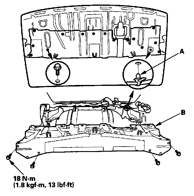 12. Remove the harness clip (A) and the rear parcel cover(B).