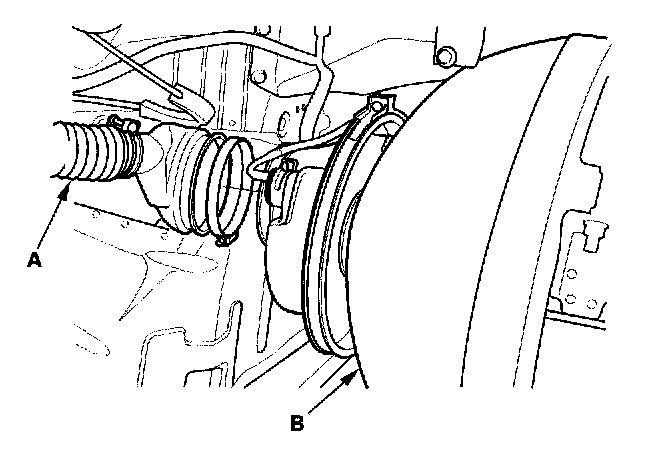 16. Disconnect the vent hose (A) from the fuel tank (B).